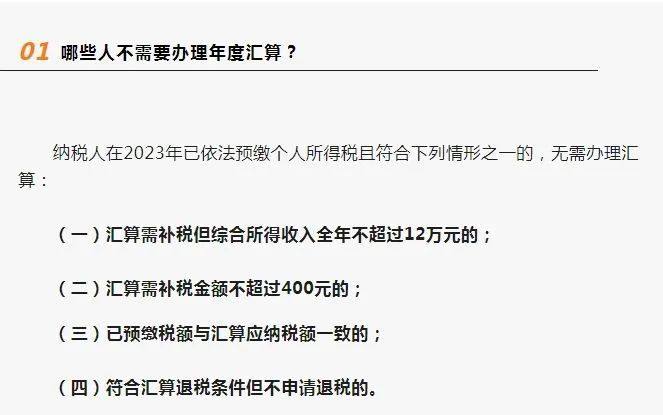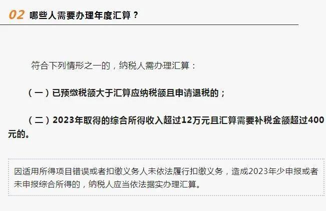 公告明确,2023年度汇算办理时间为2024年3月1日至6月30日。在中国境内无住所的纳税人在3月1日前离境的,可以在离境前办理。