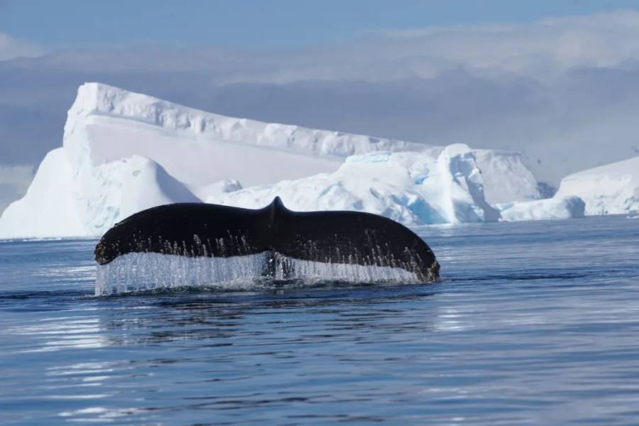 杨冰还记得,在一个天气晴好的午后,邮轮甲板上开放了烧烤。“这时,船长开始提醒,我们的六点钟方向有鲸鱼,接着,两点钟和十二点方向也出现了,”杨冰回忆,“最后船长说,我们被鲸鱼包围了,所以决定停船。请大家到甲板上,尽情享受这个时刻。”此时,所有人就聚在甲板上,欣赏鲸鱼摆尾,为鲸鱼的每一次摆尾阵阵欢呼。晴空之下,南极的海面会泛着金色的波光。对杨冰来说,这样的画面也成了她南极旅行中的金色时刻。