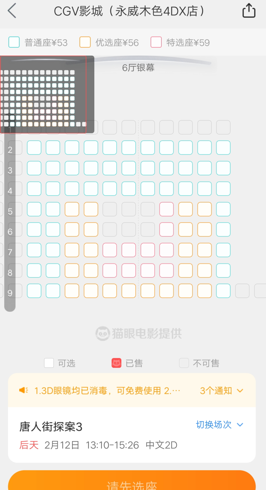 2月10日4点30分 《唐人街探案3》永威木色电影院预定情况截图