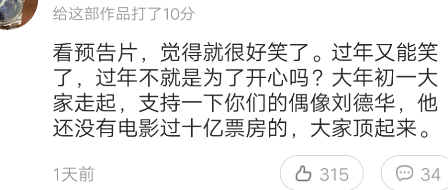 不少网友留言,去年错过的春节档电影,今年一定要把它补回来。