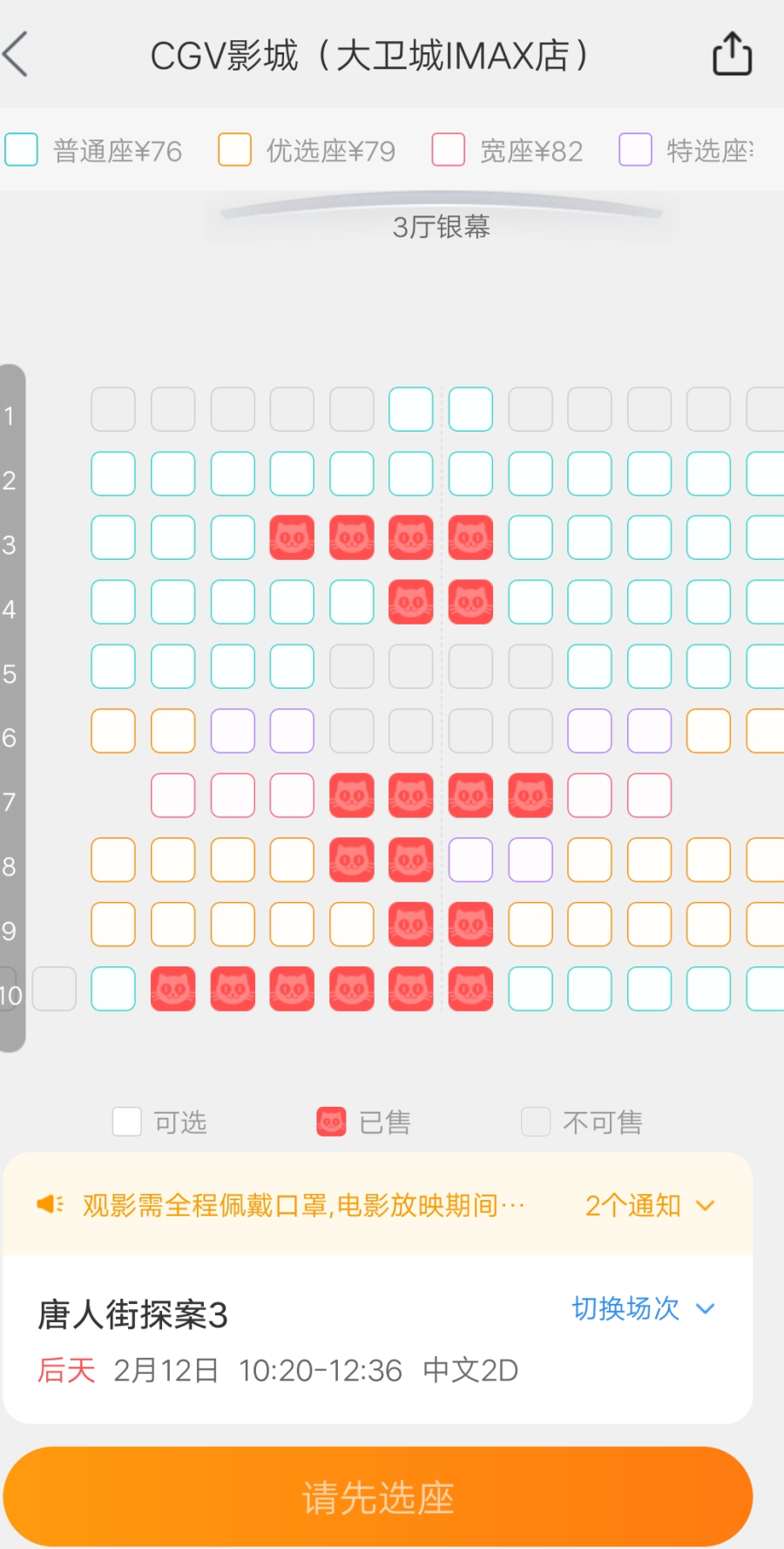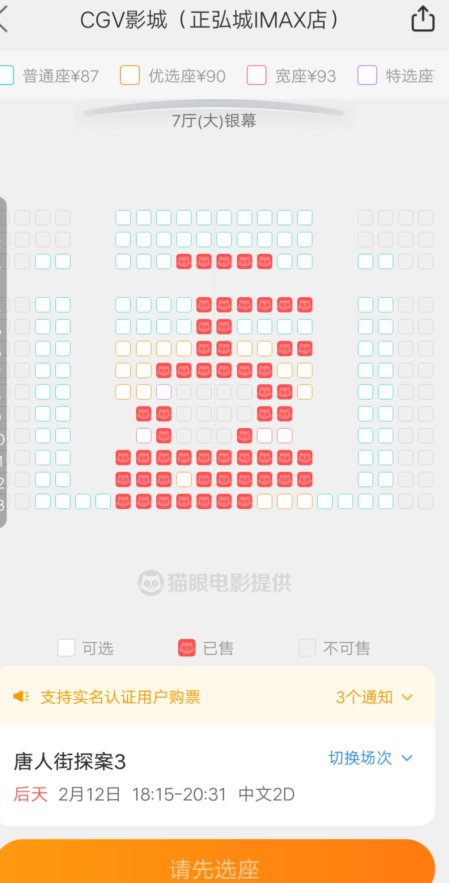 2月10日4点30分 《唐人街探案3》正弘城电影院预定情况截图
