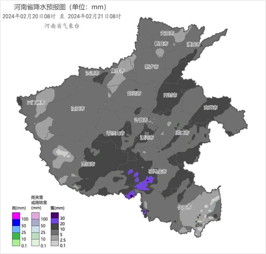 20日,全省阴天,中西部、北部有中到大雪,局部暴雪;其他县市中到大雨转雨夹雪或小雪;部分时段伴有雷电、冻雨或冰粒。