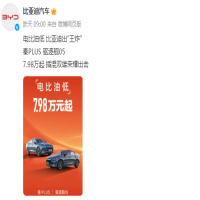 此外,比亚迪官方也发博表示,新能源车是大势所趋,目前在中国一、二线城市已全面铺开,但在其它市场仍有较大的成长空间。秦PLUS 荣耀版以7.98万元起的价格上市,一方面将激活新能源市场增量,加速下沉市场“油转电”,另一方面也会继续扩大其在A轿市场的领先优势。
