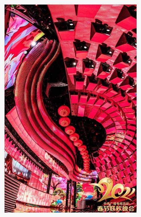 今年春晚舞台主屏采用61.4米×12.4米的8K超高清巨型大屏幕,以春晚演播大厅的中心为圆心弧形布置,在观众席后区和上方,由154块屏幕构成超高清大屏幕,与舞台主屏、地屏和装饰冰屏融为一体,构成一个穹顶演播空间,拓展了舞台视觉空间。创新设计使台上台下融为一体,将现场观众互动融入其中,也让“云”观众做客春晚现场。