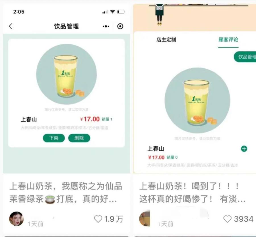 同时,定制奶茶、唱K、爬山,都出现了“上春山”款。