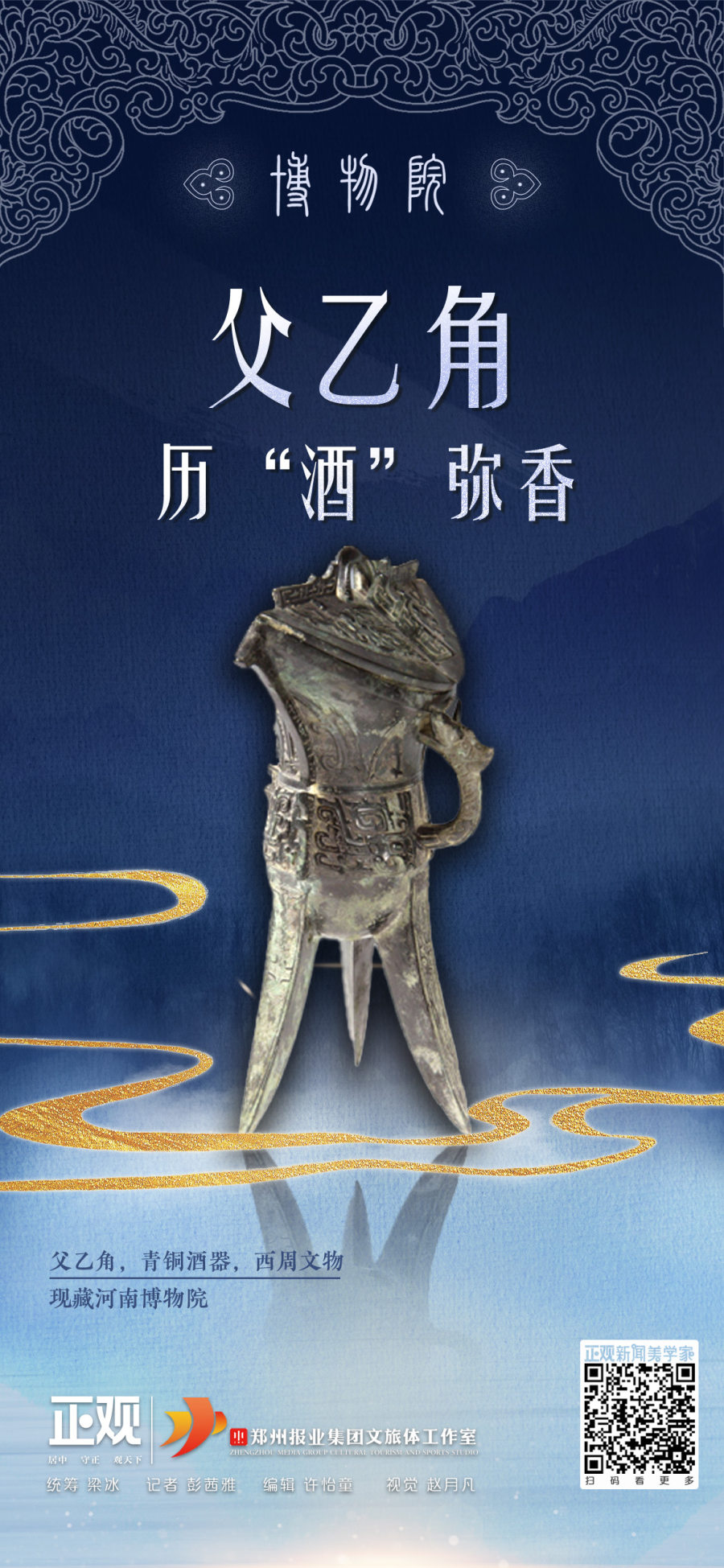据河南博物院社会教育服务部文博馆员刘璐介绍,角的造型,由爵演变而来,但仅出现在距今3000多年前的商末与西周初年,是当时重要的青铜礼器。由于流行时间短,出土和传世的青铜角数量很少。父乙角在尺寸、纹饰、造型及制作工艺方面,令后世难以望其项背,故有“角中之王”的美称。