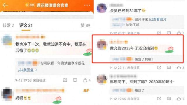 “售后演唱会”不仅能让粉丝心甘情愿地用真金白银支持,还能助力主办平台“绑牢”会员。2023年《莲花楼》演唱会在乌镇举行,彼时开出了线下、线上两类票。线下仅700个座位,需“拼运气”抽取,门槛是网友得花费448元购买爱奇艺星钻年卡,每购买1张星钻年卡可获得1次抽取机会,不限制购买次数。记者注意到,当时有人为了多几次抽线下票的机会,不惜花费几千元充10年视频平台的会员。