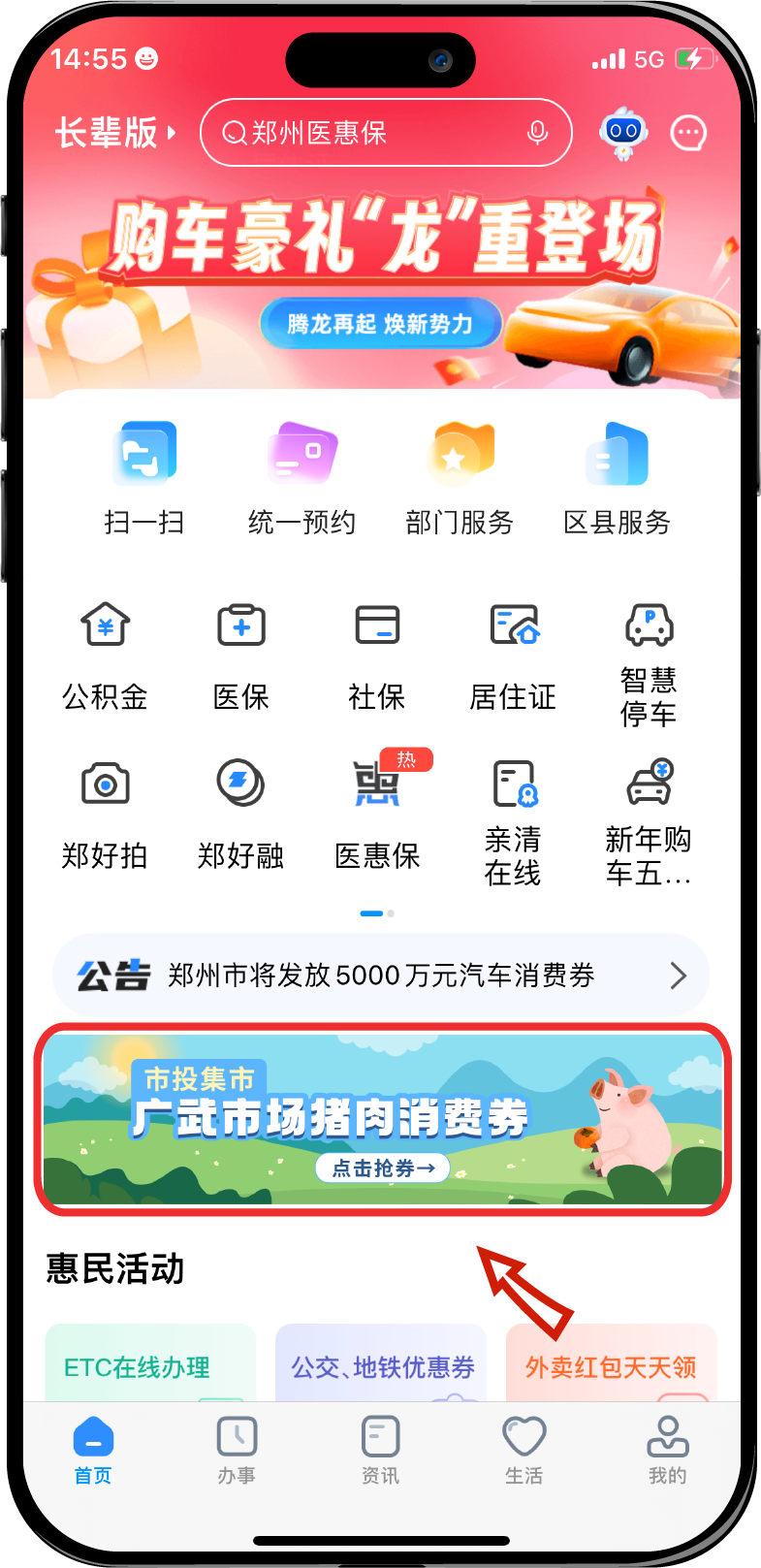 消费券领取流程:打开“郑好办”APP——点击“广武市场猪肉消费券”,点击“我要领券”。