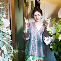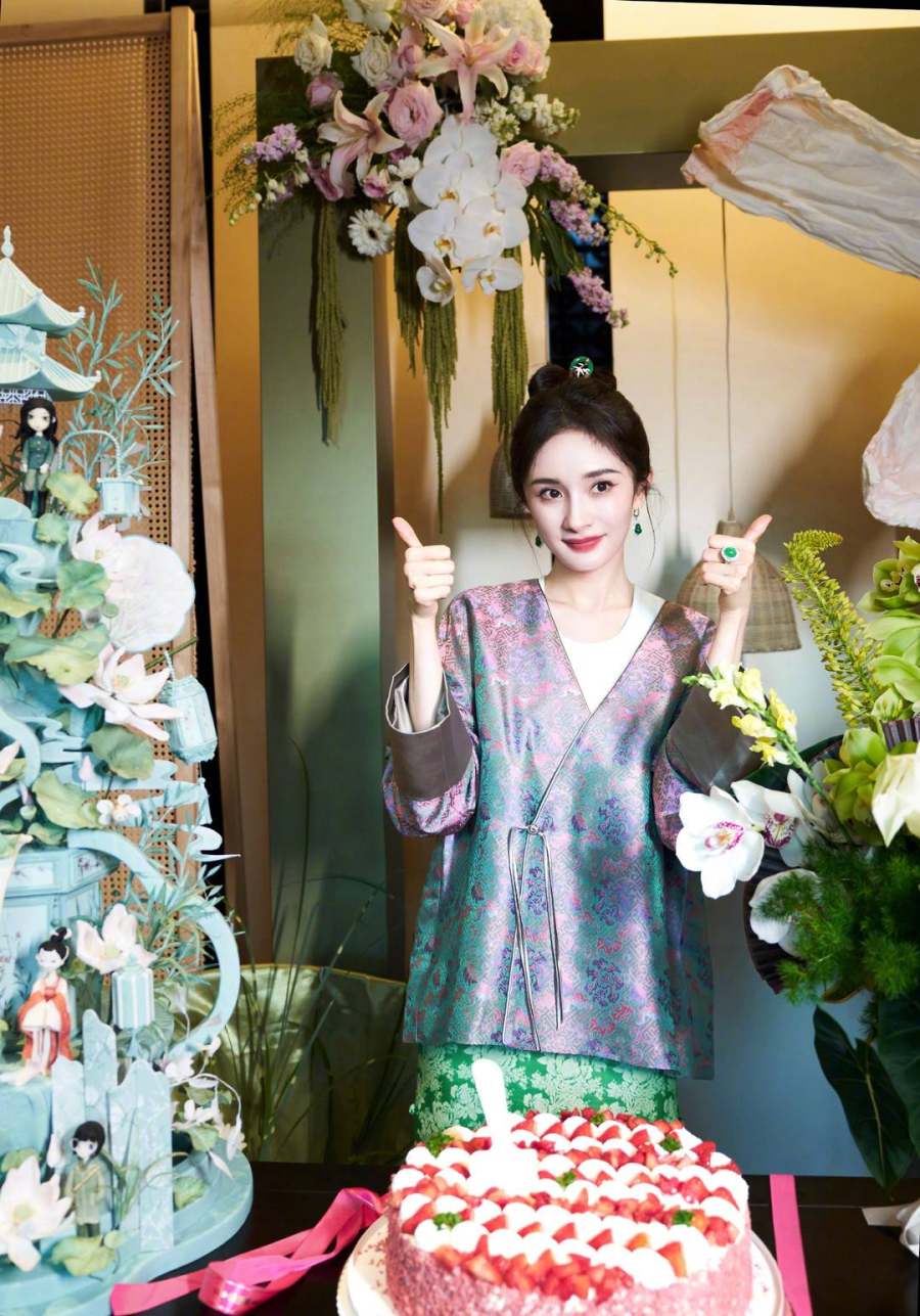 作为新中式风的“野生代言人”,无论是杨幂的机场街拍,还是日常穿搭,都总是能看到新中式的穿搭元素。早在2023年生日会上,杨幂就身着宋锦对开门襟上衣,搭配提花真丝半身裙与翡翠玉石耳坠与发簪,粉与绿的碰撞,犹如出水芙蓉与荷叶的相互映衬。