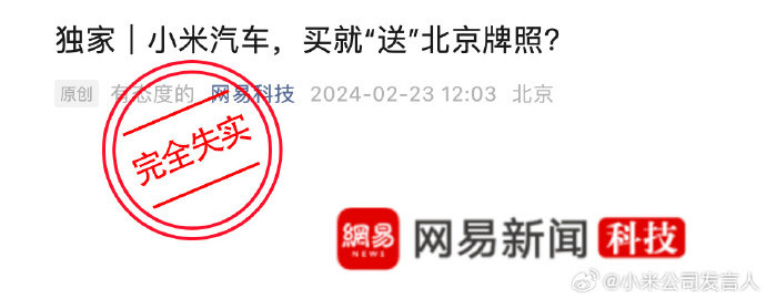 小米汽车回应“买车送北京牌照”:完全失实