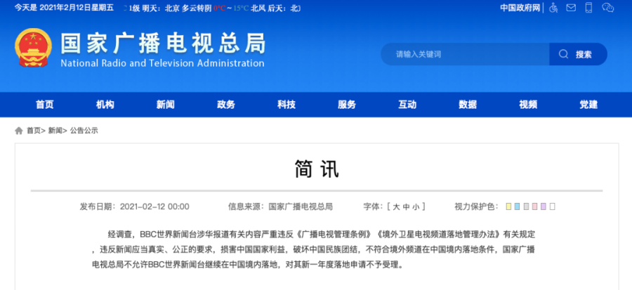 国家广电总局:不允许BBC世界新闻台继续在中国境内落地
