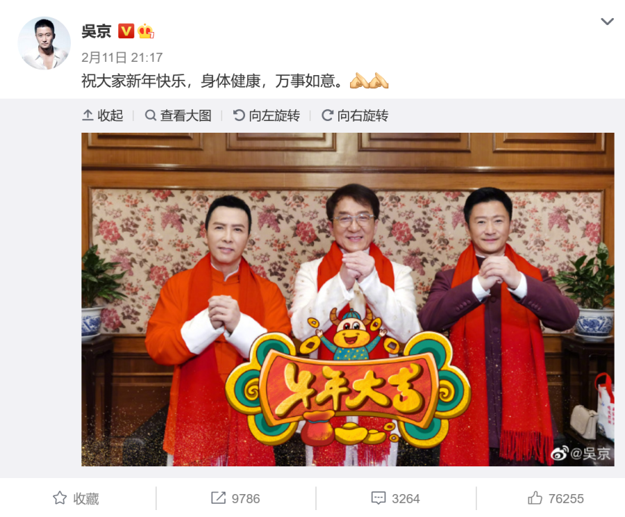 吴京和甄子丹对打后,晒出和成龙合照,网友表示成龙劝架。