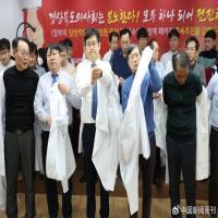 2月15日,韩国大邱,一些医生在谴责大会上脱掉白大褂,抗议政府推行医学院扩招政策。