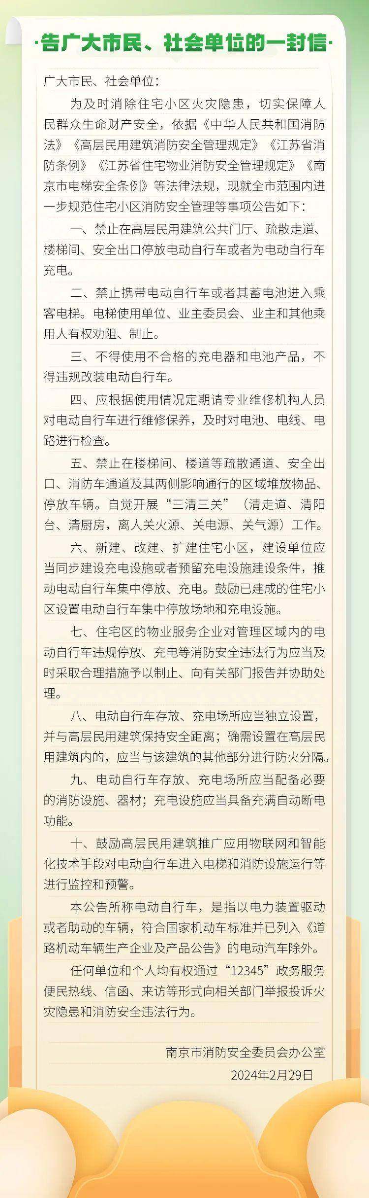 南京消防:禁止在高层民用建筑公共门厅等地停放电动车