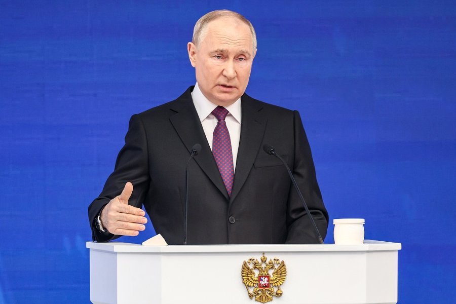 当地时间2024年2月29日,俄罗斯莫斯科,俄罗斯总统普京向俄联邦会议发表年度国情咨文。