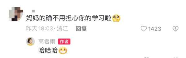 “妈妈的确不用担心你的学习啦”
