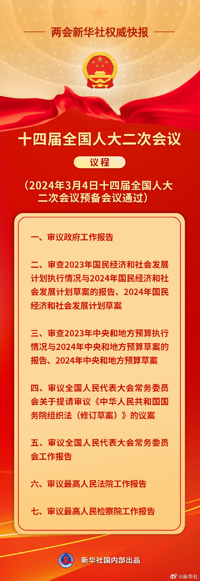十四届全国人大二次会议4日上午举行预备会议,通过了大会议程。