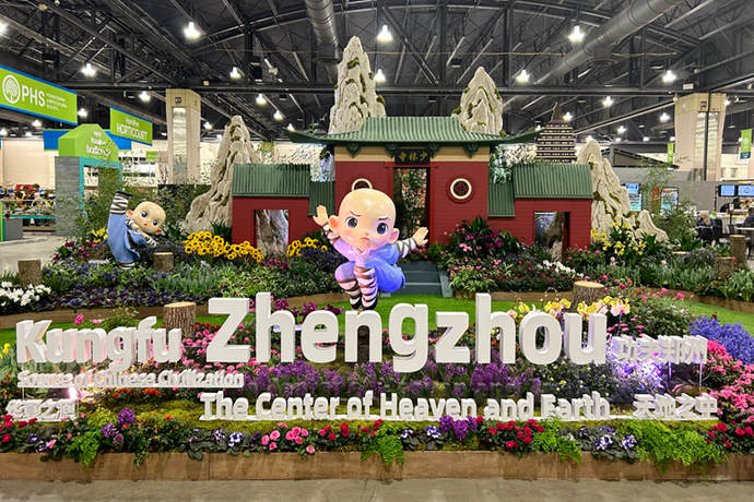 费城花展是美国最大、世界上举办时间最长的园艺活动,已成功举办195届。在繁花似锦的展园内,郑州展位以“功夫郑州·花俏嵩山”为主题,巧妙地以嵩山与少林寺的雄伟山川为背景,融入月季、牡丹等中国传统名花,展现出别具一格的东方风情,独具匠心,令人陶醉。