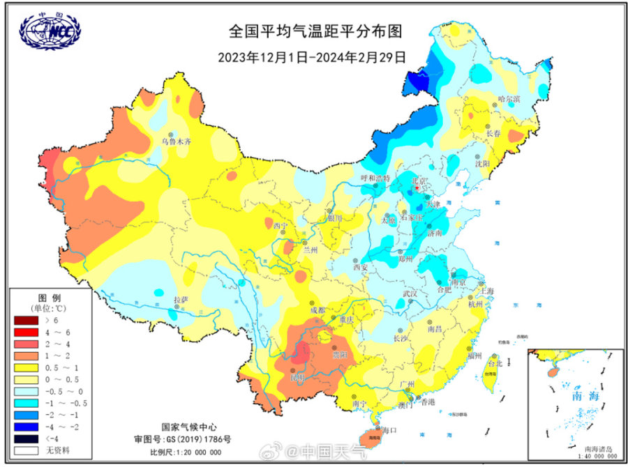 @中国天气 3月4日消息,据国家气候中心消息,2023/2024年冬季,全国平均气温较常年同期偏高0.3℃,阶段性起伏大。全国36.7%的气象观测站达到暖冬标准,15%的气象观测站达到冷冬标准,均没有达到全国暖冬或冷冬的标准(全国暖冬或冷冬需超过50%的观测站),因此整体来看,2023/2024年冬季为正常年份,但空间差异大,暖冬主要出现在华南、西南等地,而华北南部、黄淮、江淮一带多为冷冬。降水量较常年同期偏多19.8%,空间分布不均,华北多华南少。有12次冷空气过程影响我国,其中3次为寒潮过程,多地降雪日数偏多、累计降雪量偏大、积雪偏深;西南地区温高雨少,有阶段性气象干旱发展;冬初和冬末各有一次沙尘天气过程影响我国。预计春季(3月至5月),全国大部地区气温较常年同期偏高,北方大部和江南地区降水偏多;西南地区降水偏少,有可能发生春旱。