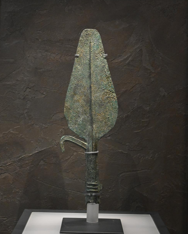 圆銎宽叶倒勾铜矛