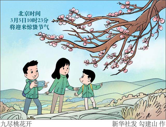 我国古代将惊蛰分为三候:一候桃始华,二候仓庚(黄鹂)鸣,三候鹰化为鸠。元稹对惊蛰的描写贴合这“三候”,他写道:“阳气初惊蛰,韶光大地周。桃花开蜀锦,鹰老化春鸠。”