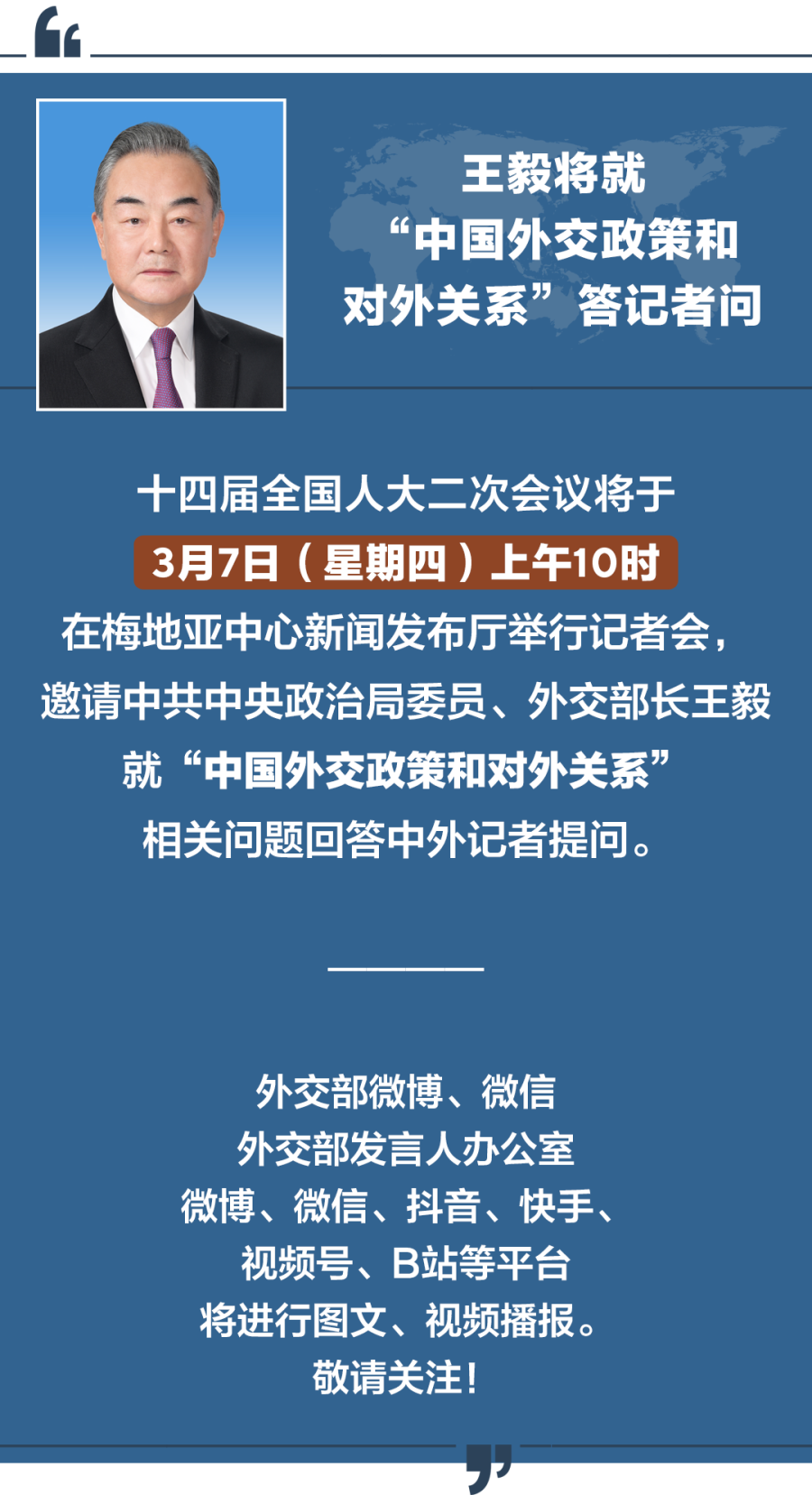 3月7日10时!王毅将就中国外交政策和对外关系回答中外记者提问