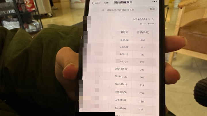 一名群演出示收入。图片来源:潮新闻记者 吴越 摄
