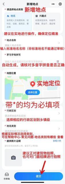3、点击新增地点进行填写;