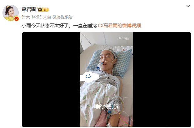 据悉,高君雨妈妈在昨天(3月9日)的视频中透露,小雨状态不佳,一直在睡觉。
