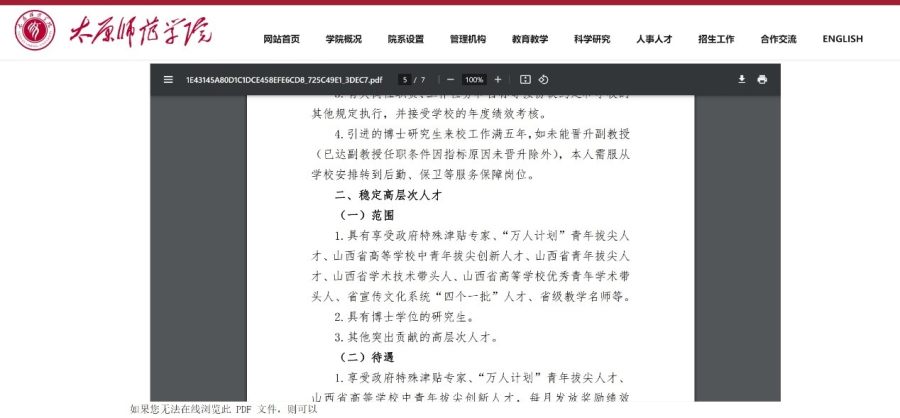 近日,一则《太原师范学院引进和稳定高层次人才管理办法》的截图在多个关注高教领域话题的网络平台上引起关注。