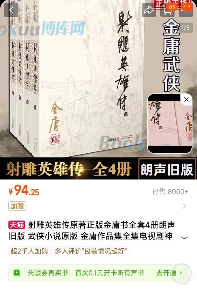 淘宝网店《射雕英雄传》朗声旧版全4册已售出8000+单。网络截图