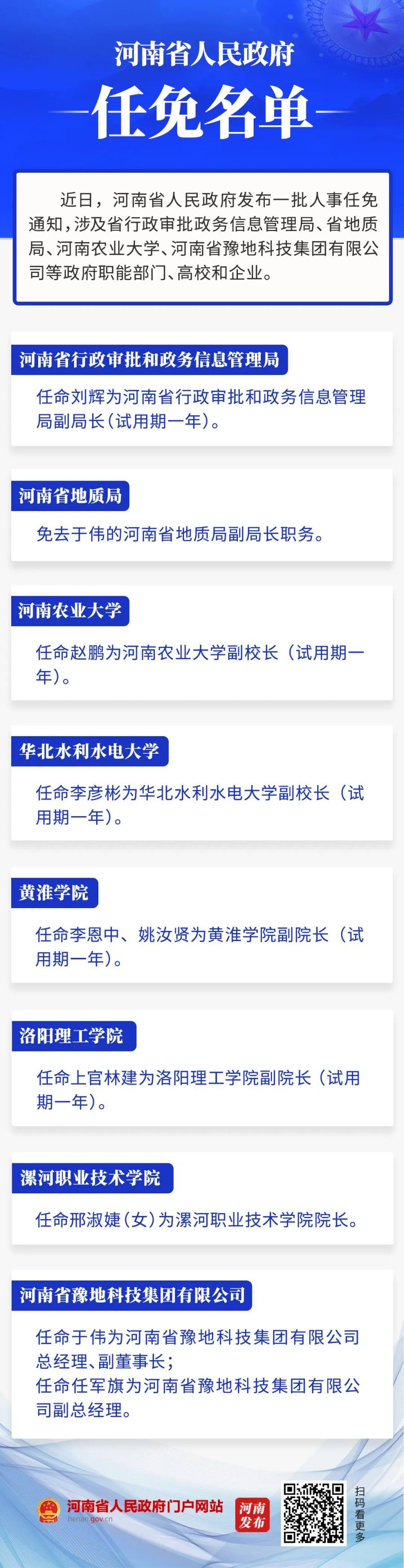 河南省政府新任免一批干部