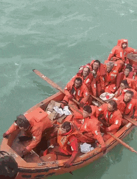 3月12日上午10点左右,在长江口渔场162海区,一艘运煤船遇险,船上16名船员落水。正在附近海域进行捕捞作业的“浙岱渔11492”船发现后,立即展开救援。