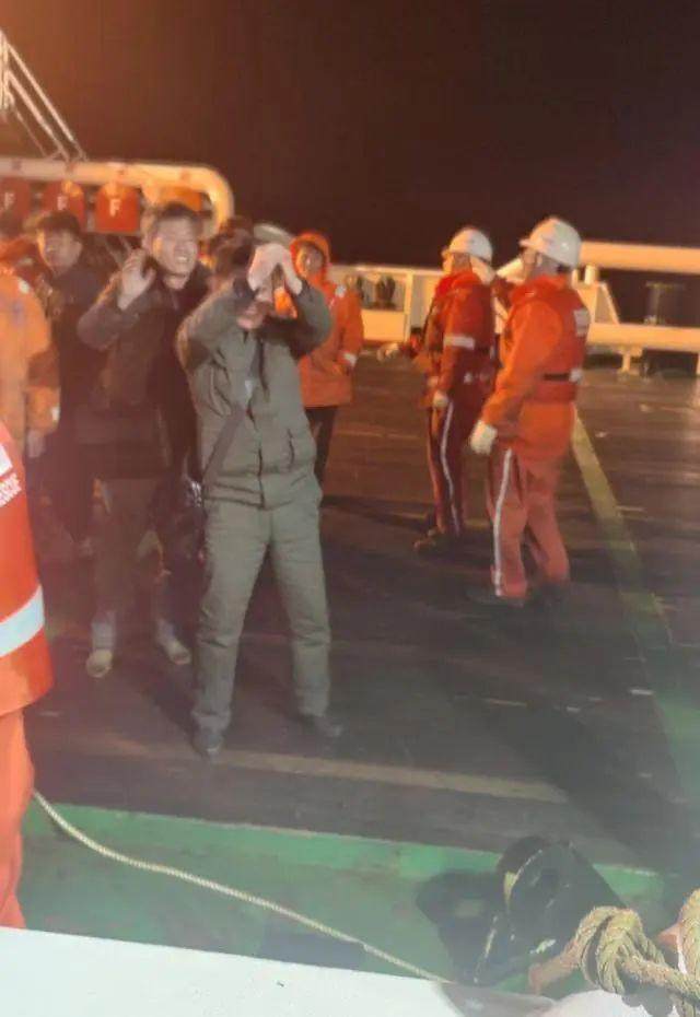 获救的船员们平安转移,对大家表示感谢。图源:浙江岱山发布