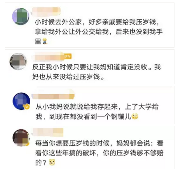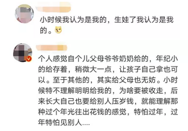 还有网友表示,小时候认为压岁钱是自己的,长大了觉得应该是父母的。