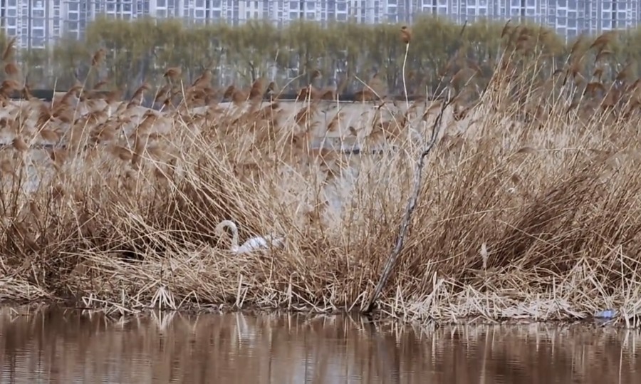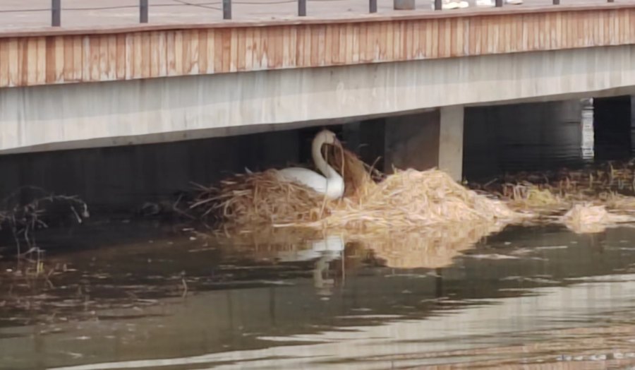 嘘,郑州北龙湖的天鹅正在筑巢孕育宝宝