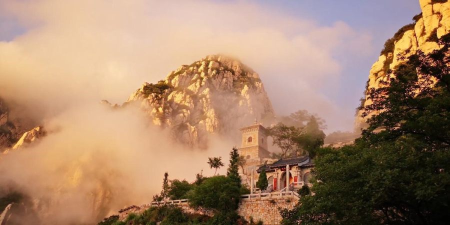 云雾缭绕下的嵩山禅院