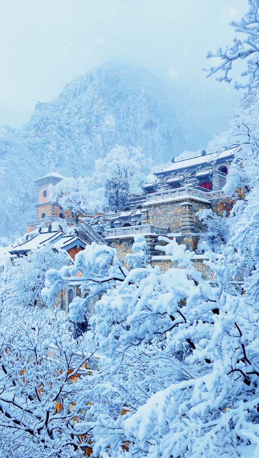 冬日白雪皑皑的嵩山禅院