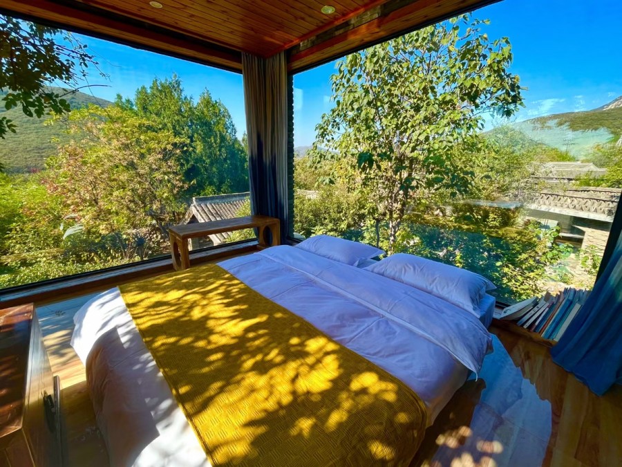 秋冬季节的禅心居民宿客房窗景