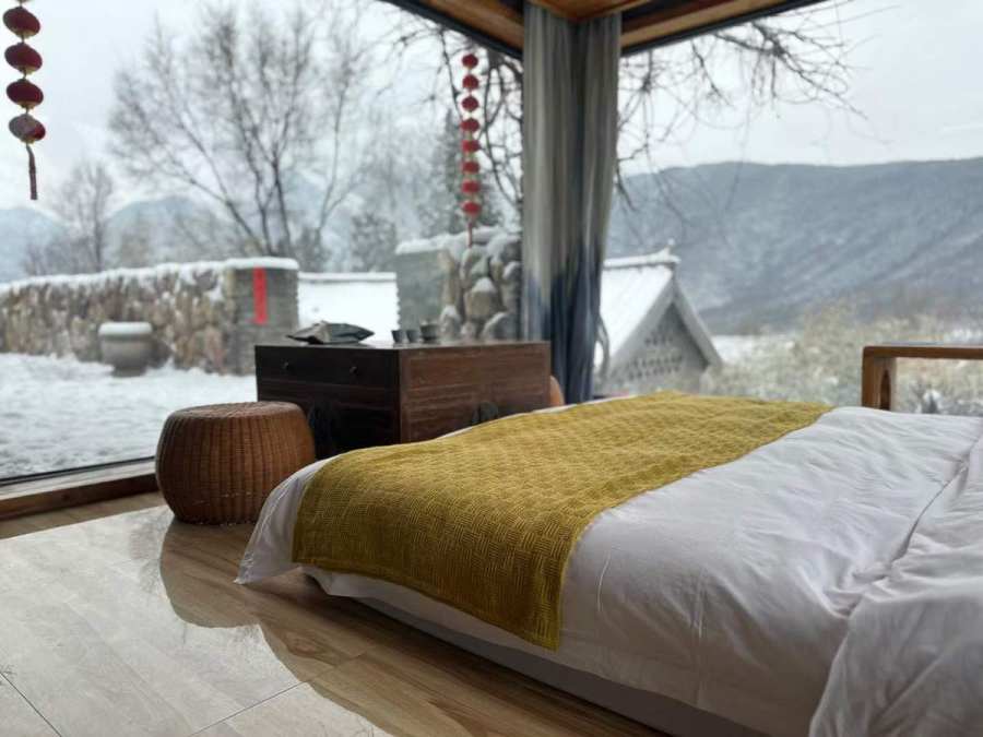 老房改造的民宿2018年开始营业,共13间客房,内部是简洁舒适的现代化设施,配有素食餐厅、咖啡馆、露营烧烤区等,吸引了郑州、洛阳等周边城市的许多年轻人来打卡拍照,感受自然、对话历史,体验安静而古老的乡村山居生活。