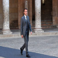 2023年10月5日,在西班牙格拉纳达,前来参加第三届欧洲政治共同体领导人会议的法国总统马克龙抵达阿尔罕布拉宫。
