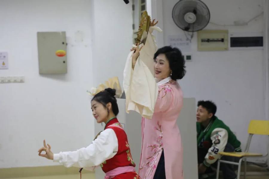 给学生们表演了一段经典剧目