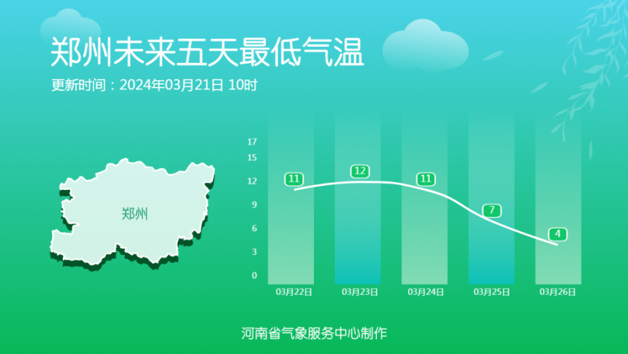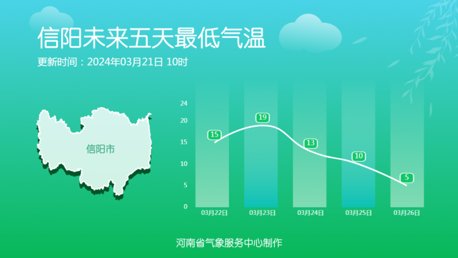 受冷空气影响,23到25日,全省偏北风4到5级,阵风7级左右。气温逐渐下降,最高气温25日达最低,全省大部10到14度;最低气温26日凌晨达最低,全省大部2到6度,较前期下降6到10度。北部、南部部分县市将出现寒潮天气。