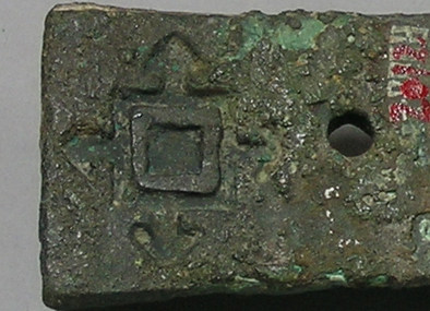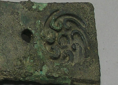 漩涡纹戈内两面各有一纹饰,一面为漩涡纹,与郑州二里岗出土的陶文接近。一面为“回”字向四面各出一箭头样的纹饰,郑州二里岗文化四期出土的戈内部也有相近的纹饰。由此可推断,人民公园期与商前期二里岗文化是有裔承关系的。但从这件戈的形制看,与二里岗文化的戈还是有一定差别,而与安阳殷墟二期的同类戈形制相似。因此漩涡纹戈虽然出土于郑州,但从文化类型上看,却属于安阳商代后期的殷墟文化。