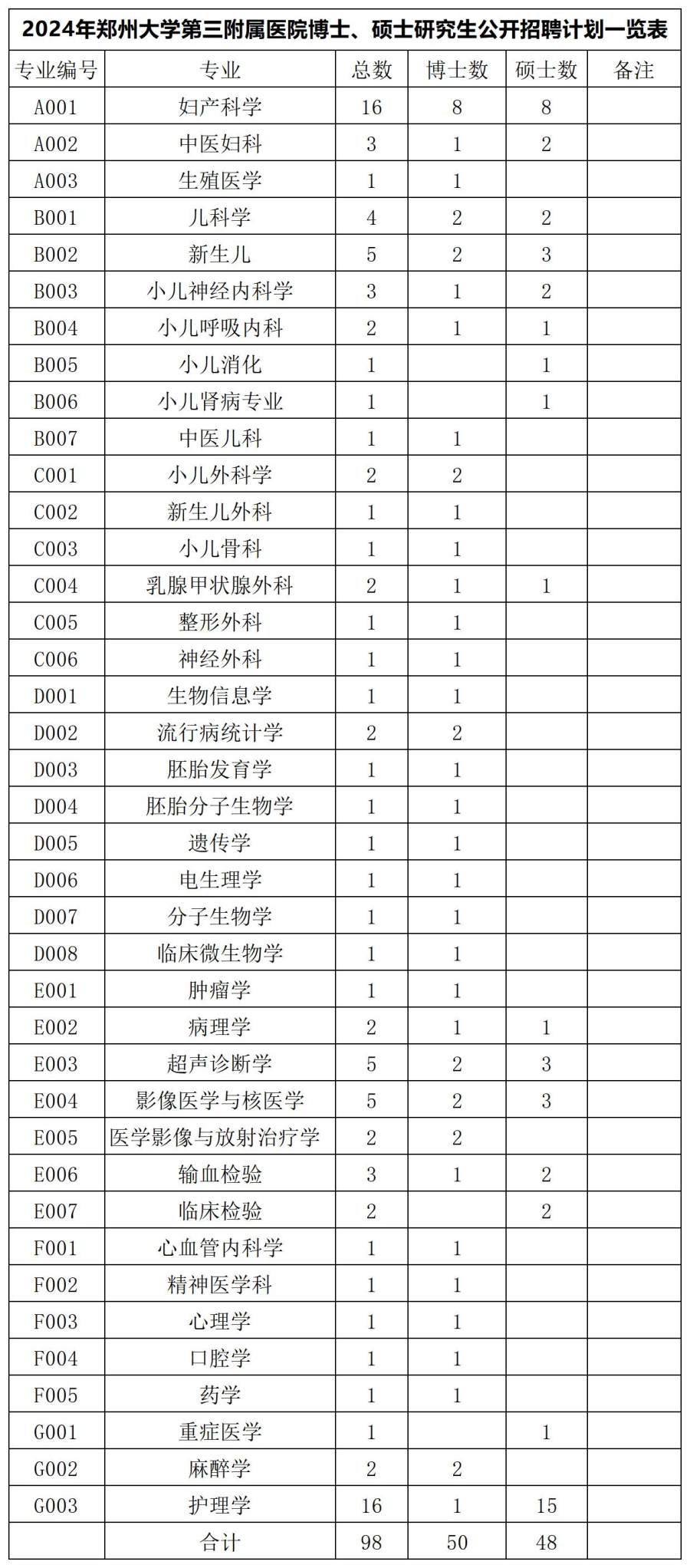 3月20日,郑州大学第三附属医院暨河南省妇幼保健院发布2024年度公开招聘工作人员的公告,根据医院工作需要,2024年拟面向社会公开招聘博士、硕士研究生98名。