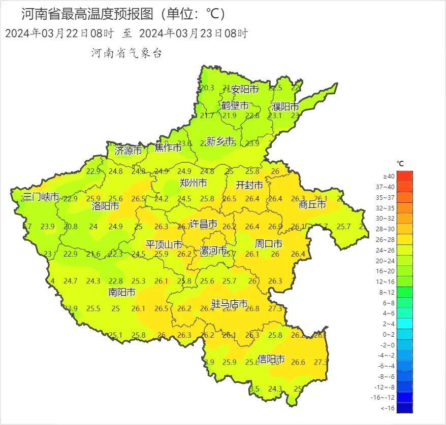 预报来源:河南省气象台2024年3月22日12时预报