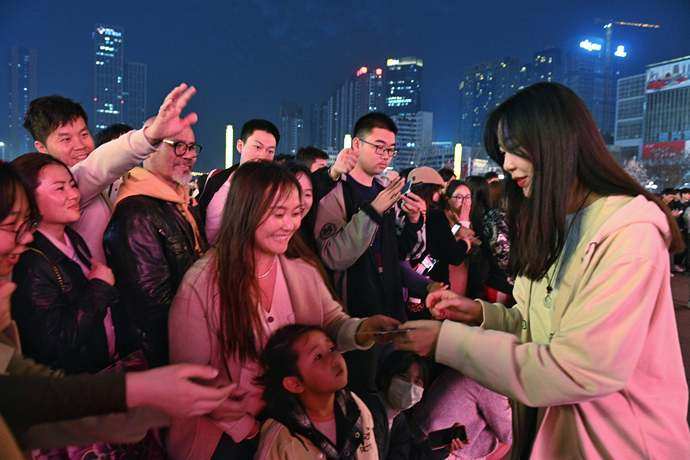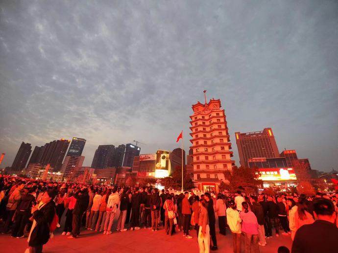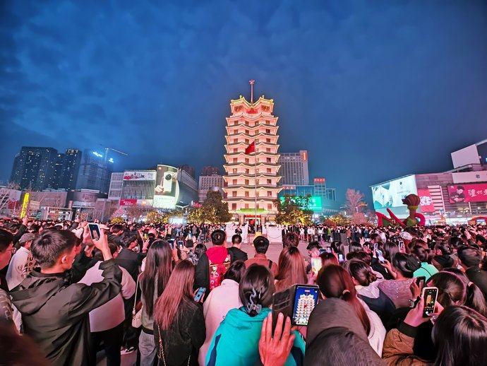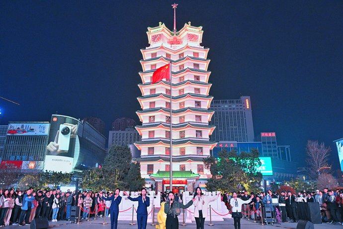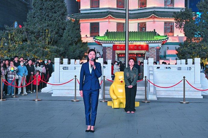 郑州二七塔上演“冬去春来 玉兰花开”主题快闪