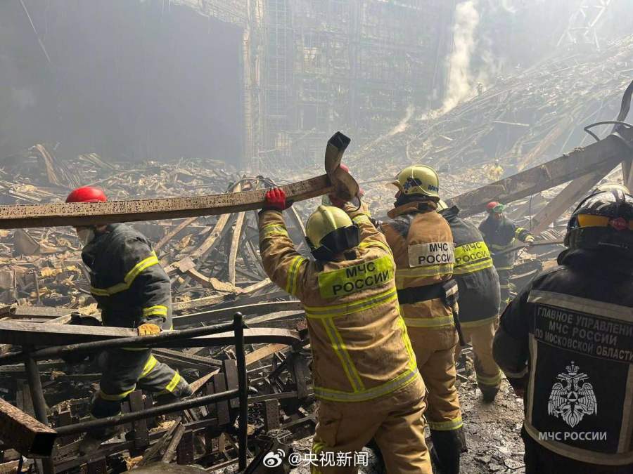 此次恐怖袭击导致“克罗库斯城”音乐厅大楼顶部几乎完全被火焰吞噬,部分楼顶发生坍塌。俄罗斯紧急情况部发布的音乐厅内部画面显示,音乐厅已被烧得面目全非。此外,莫斯科州州长表示,救援人员今天将对音乐厅进行相关拆除和清理作业。