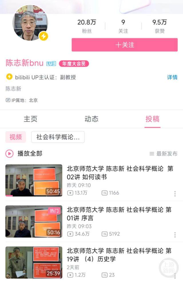多位北师大学生表示,陈老师发传单的事情,已经在北师大师生的朋友圈广泛转发。在陈教授的视频账号上,上游新闻记者看到,每一条网课视频,都标注了课程主讲内容和序号。