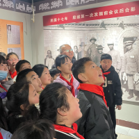 2024年3月22日,安阳市小屯小学的少先队员们来到殷墟甲骨文出土史馆开展寻访活动。张四平热情地向他们介绍每份资料背后的故事。巧合的是,其中一名学生的曾祖父也参与了殷墟的第一次发掘,在展板上还找到了名字。
